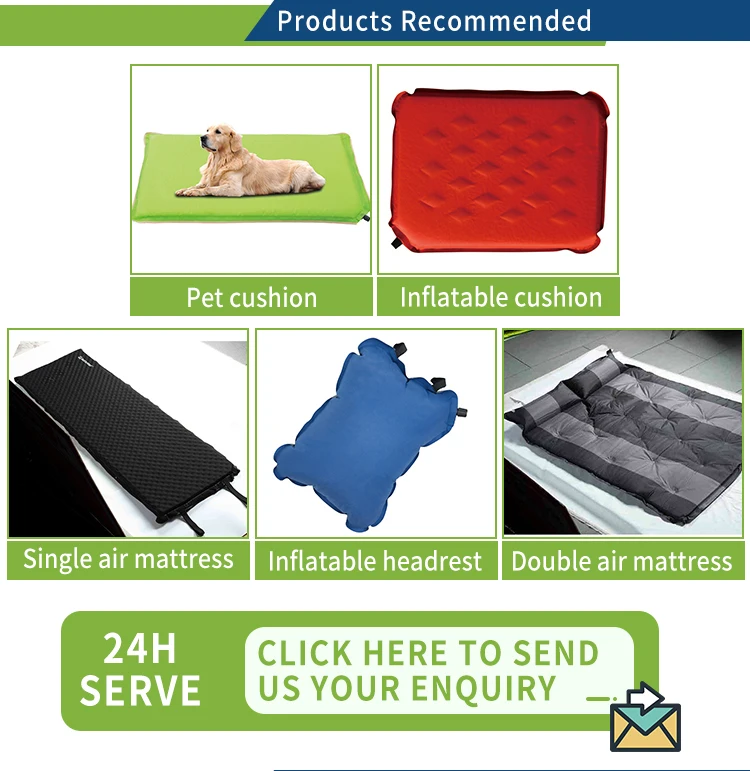 1. Suitable for outdoor camping, office lunch break, family. 2. Use elastic sponge padding, comfortable and soft, intimate design. 3. Glue process closely fit, air distribution within the air cushion, air cushion comfortable and smooth, long life. 4. Moisture ,inflatable, easy and convenient.