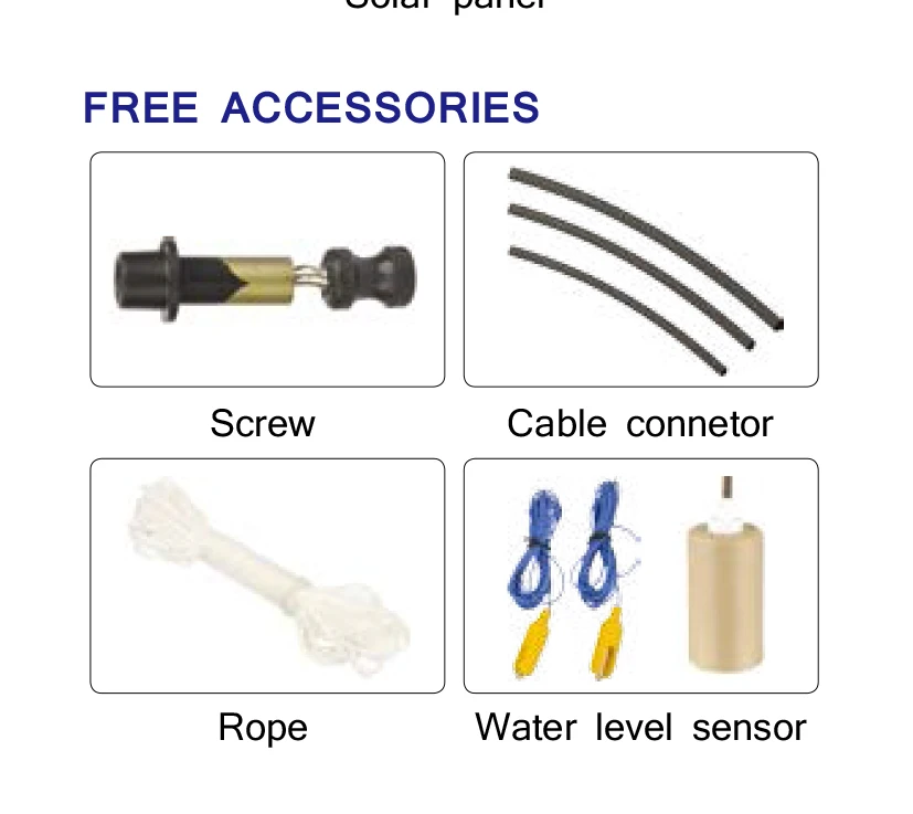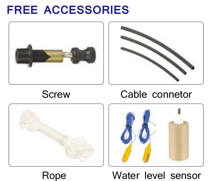 We offer one screw, three cable connectors, one 10m rope, two water sensors, for free.