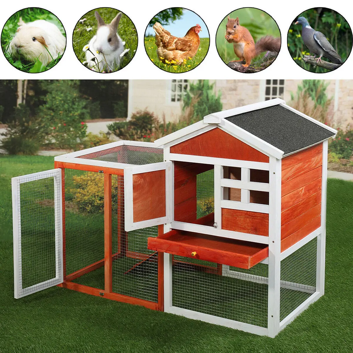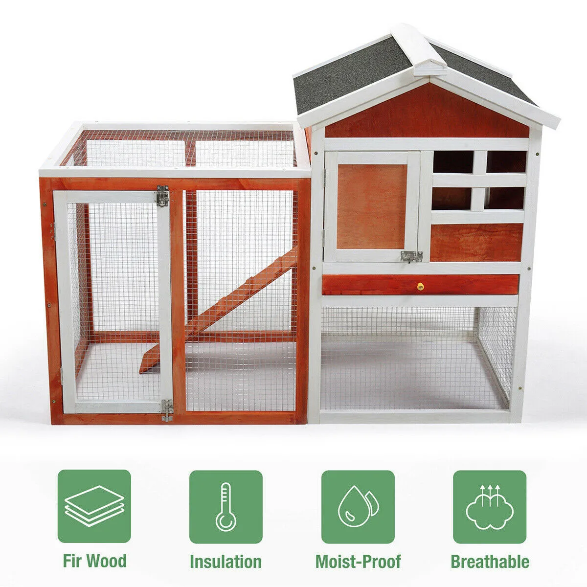 Large Outdoor Double Space Deck Portable Wooden Chicken Coop With Stairs