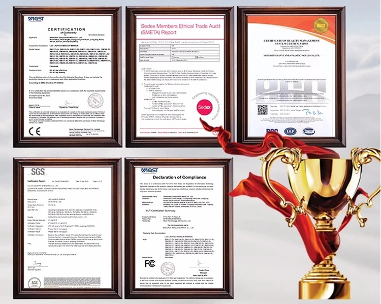 Sales Points | 1.360 degree rotation 9 pcs led bulbs mirror with white metal frame 2. Dimmable Brightness ,three kinds of lights could be chosen. 3.Special explosion-proof protective film to ensure safety. |