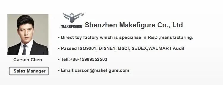 Shenzhen Makefigure Co., Ltd was established in 2010, we are OEM toy manufacturer which integrating R&D, design and manufacturing. Our main products include: Action figures, Cartoon/Anime Figures, Collectible Toys, PVC Figures, Vinyl Toy, Baby Dolls, Sports Give Away Toys, Electronic Toys, Souvenir Toys, Promotional Toys, 3D Plastic Key-Chains, Plastic Money-saving Box, Seasonal Gift Toys, etc. All our products comply with international toys safety standard, Non-Toxic, Phthalate free, passed En71-1-2-3, CE, ASTM,CPSIA.