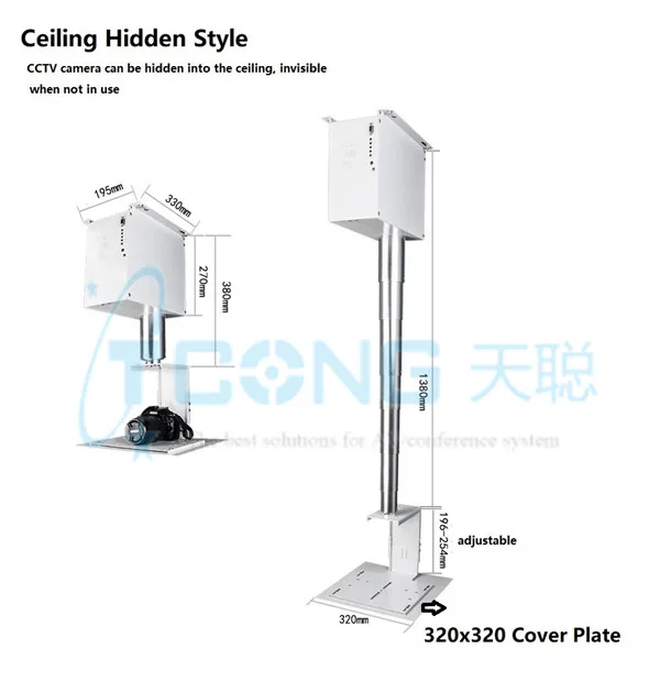 Телескопическая потолочная камера с подъемом, скрытое потолочное крепление для камеры видеонаблюдения с одной вертикальной стойкой для путешествий, моторизованное крепление для камеры 3 м