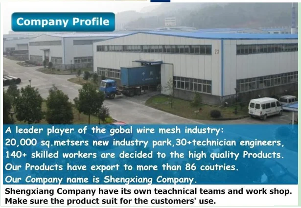 Shengxiang Company have produce the wire mesh products for 30years ,and have 16 years export experience.We have 280 sets equipments, a staff of 136 people including 28 technicians.