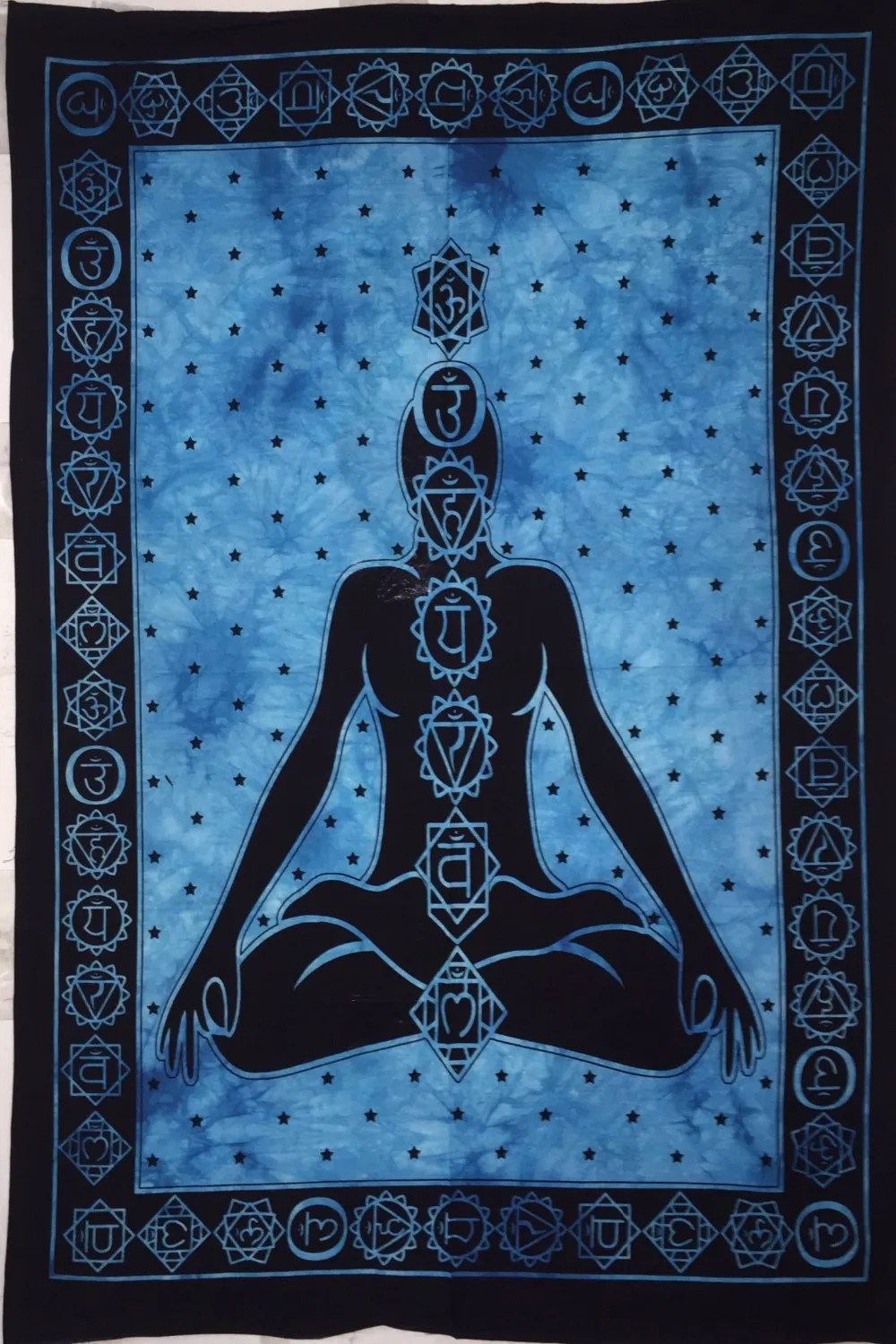 Poster size Mandala wall tapestry, 30" x 40". Screen printed in India on cotton, by hand with vegetable dye. Great accent for small spaces to add color or texture to any area. Please check out my shop for more hand crafted items and designs.