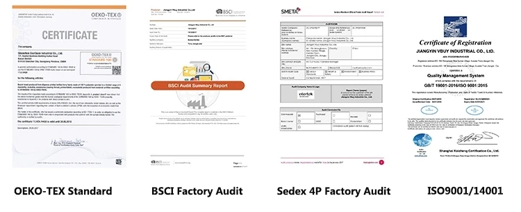 Test and Certificate | SGS,OEKO/BSCI/SEDEX-4P/ISO9001/ISO14001 | ||||||