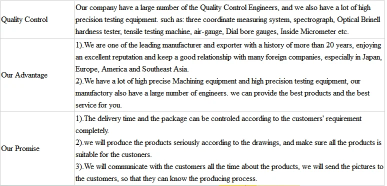 Prices will be quoted within 24 hours after we get your inquiry with detailed information ( including drawings, material, surface treatment,quantity, special requirements,etc).