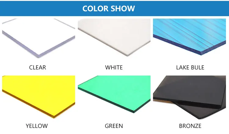 Our company now have following several products:hollow polycarbonate sheet, Solid polycarbonate sheet and corrugated polycarbonate sheet.