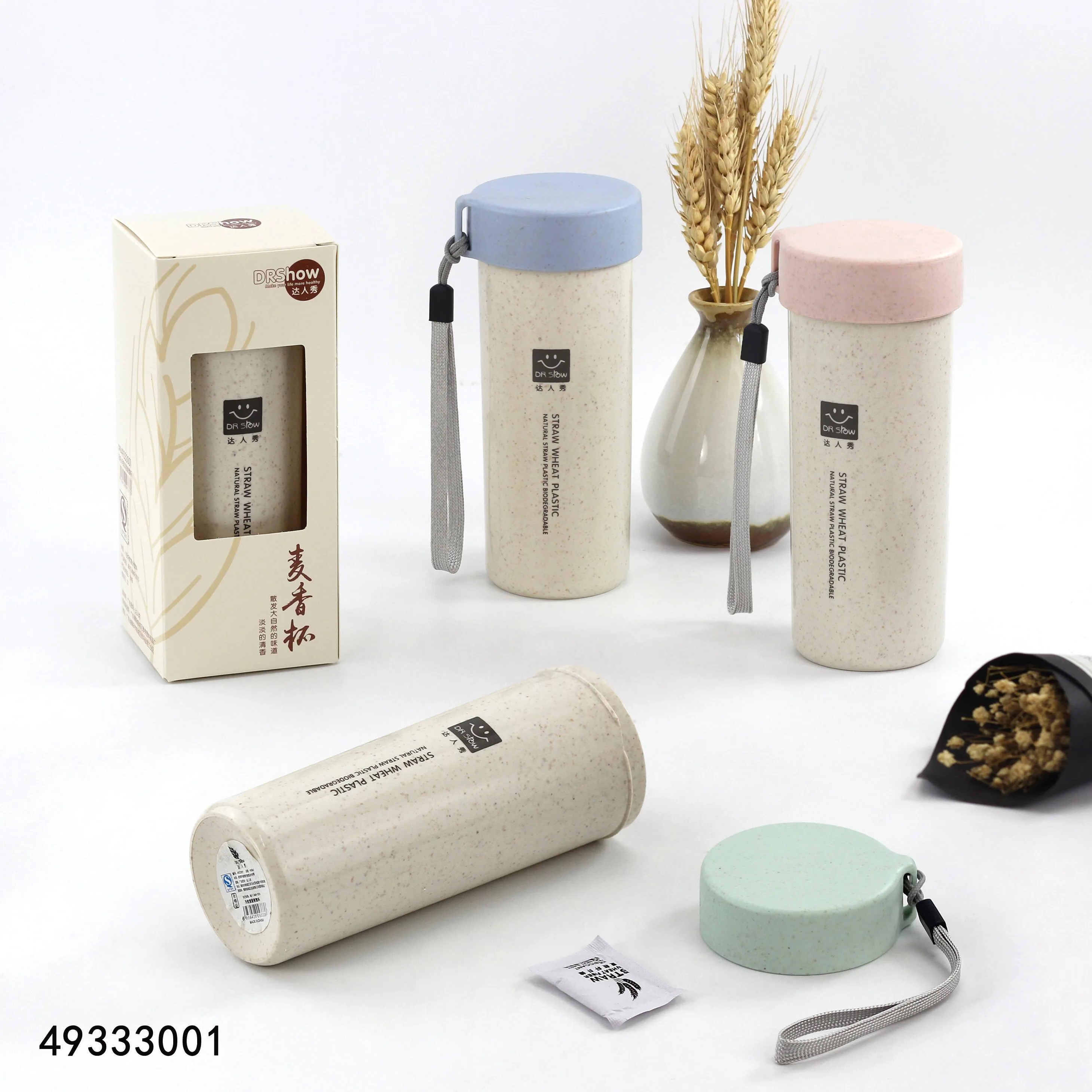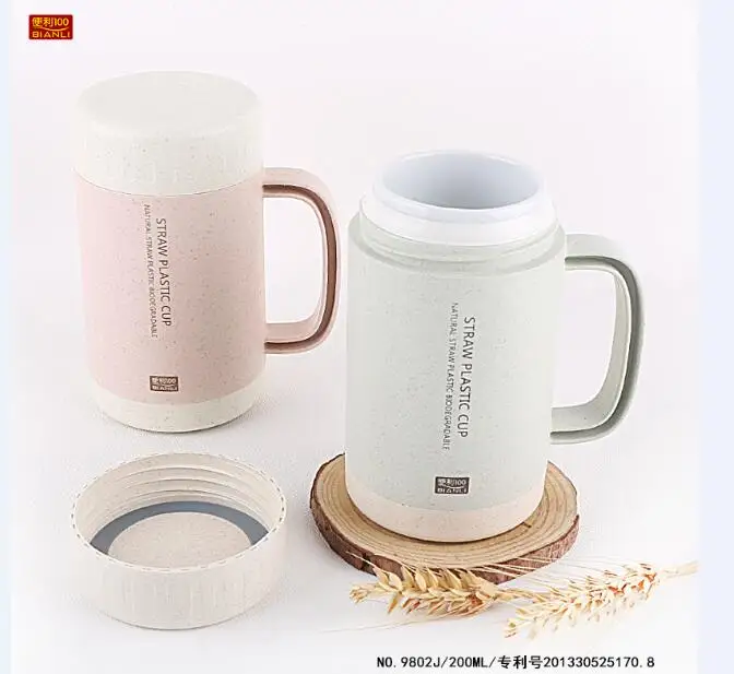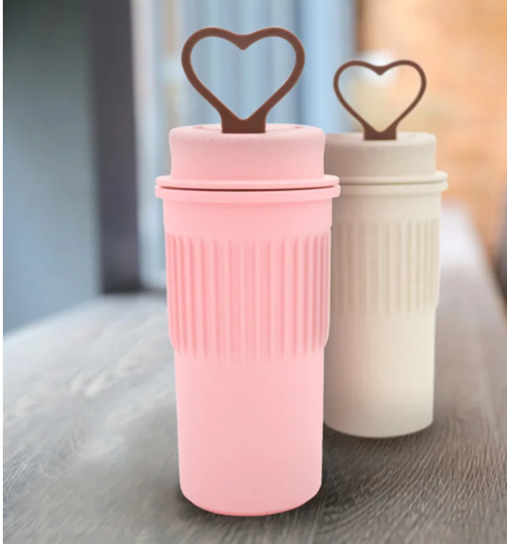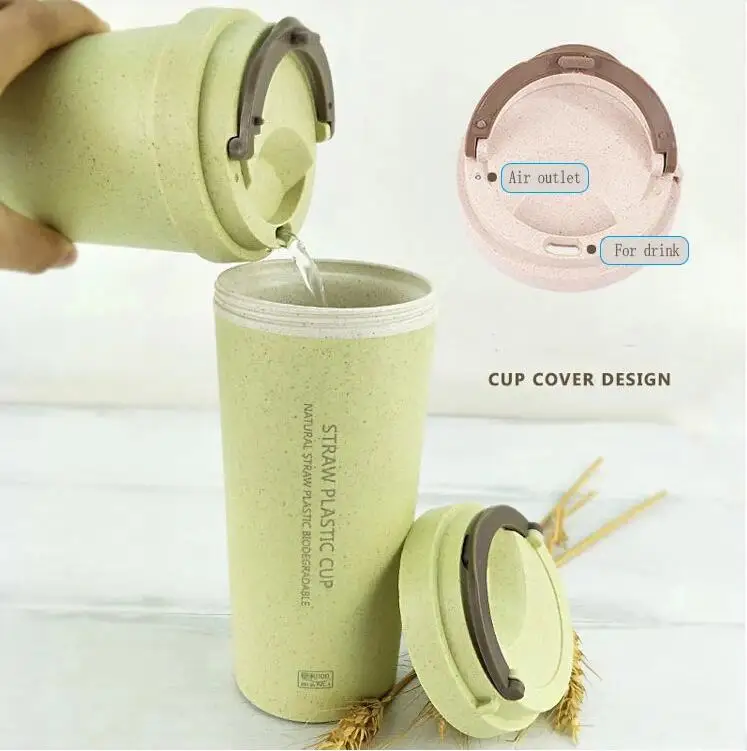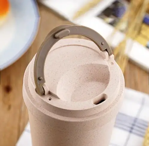 400ml Wheat Straw Cellulose Made Leak Proof Double Layer Heat Insulate Water Bottle Coffee Cup with Handle Creative Fashion