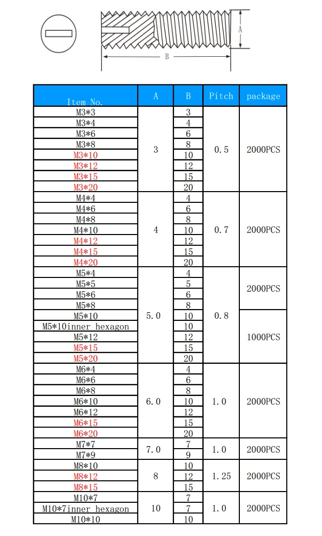 Thread | 0.5-1.0mm |