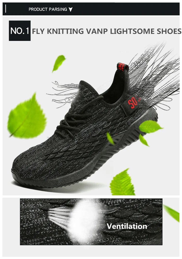 FUNTA summer low cut In Stock Breathable flykniting large size industrial shoe sport long safety shoes steel toe