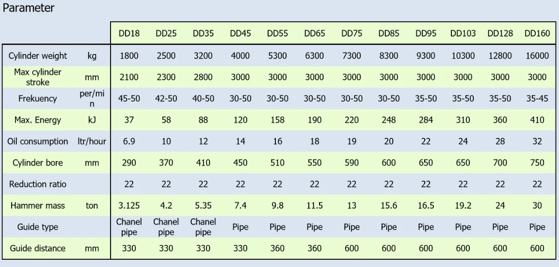 Max.Suitable pile | kg | 6000 | 7000 | 9000 | 13000 | 16000 | 22000 | 30000 | 38000 |