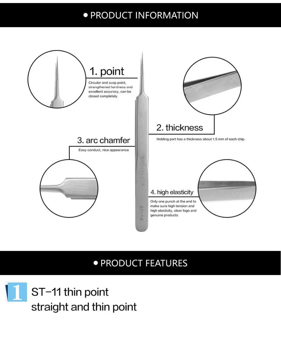 Product Name | NAGARAKU Stainless Non-magnetic Eyelash Extension Tweezers |