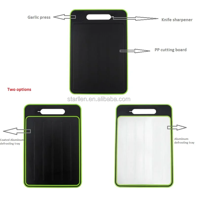 4 in 1 Nonstick Defrosting Cutting Board With Knife Sharpener and garlic press