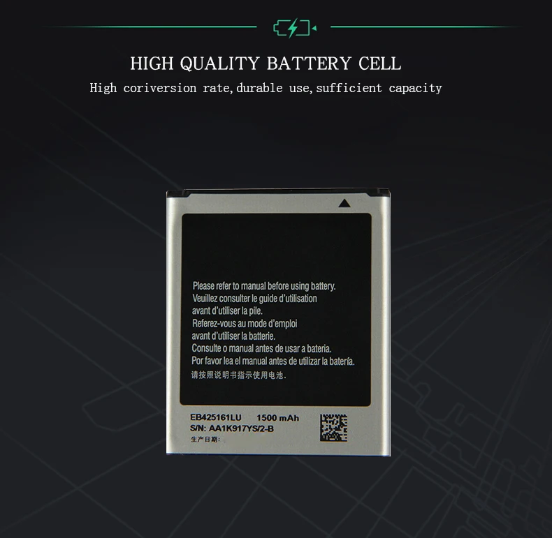 Rechargeable Cell & IC | Real capacity cell, more steady and safety.Long standby time and talk time.Best protection way Double IC. |