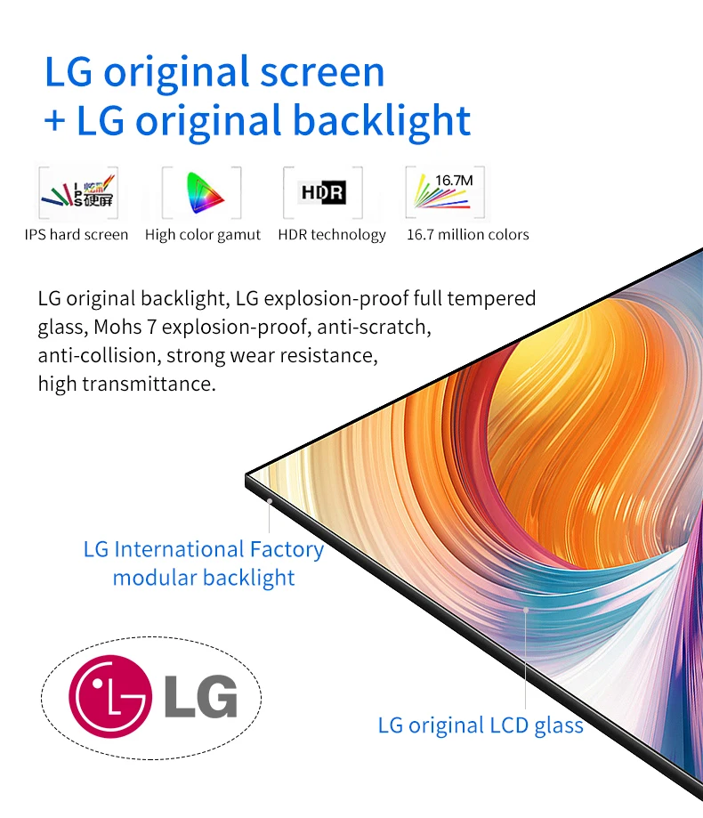 New A+degree 2K/4K Full-screen, for the size above 49 inch, resolution up to 4K UHD, without black border, no blind spot | |||||||
