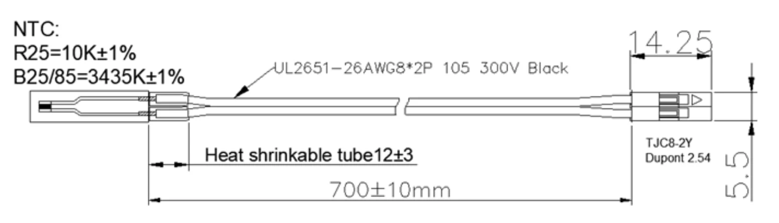 Flexible 10k 1% 3950 Thin film thermistor with ntc 10k resistance high sensitive ntc thermistor for battery pack