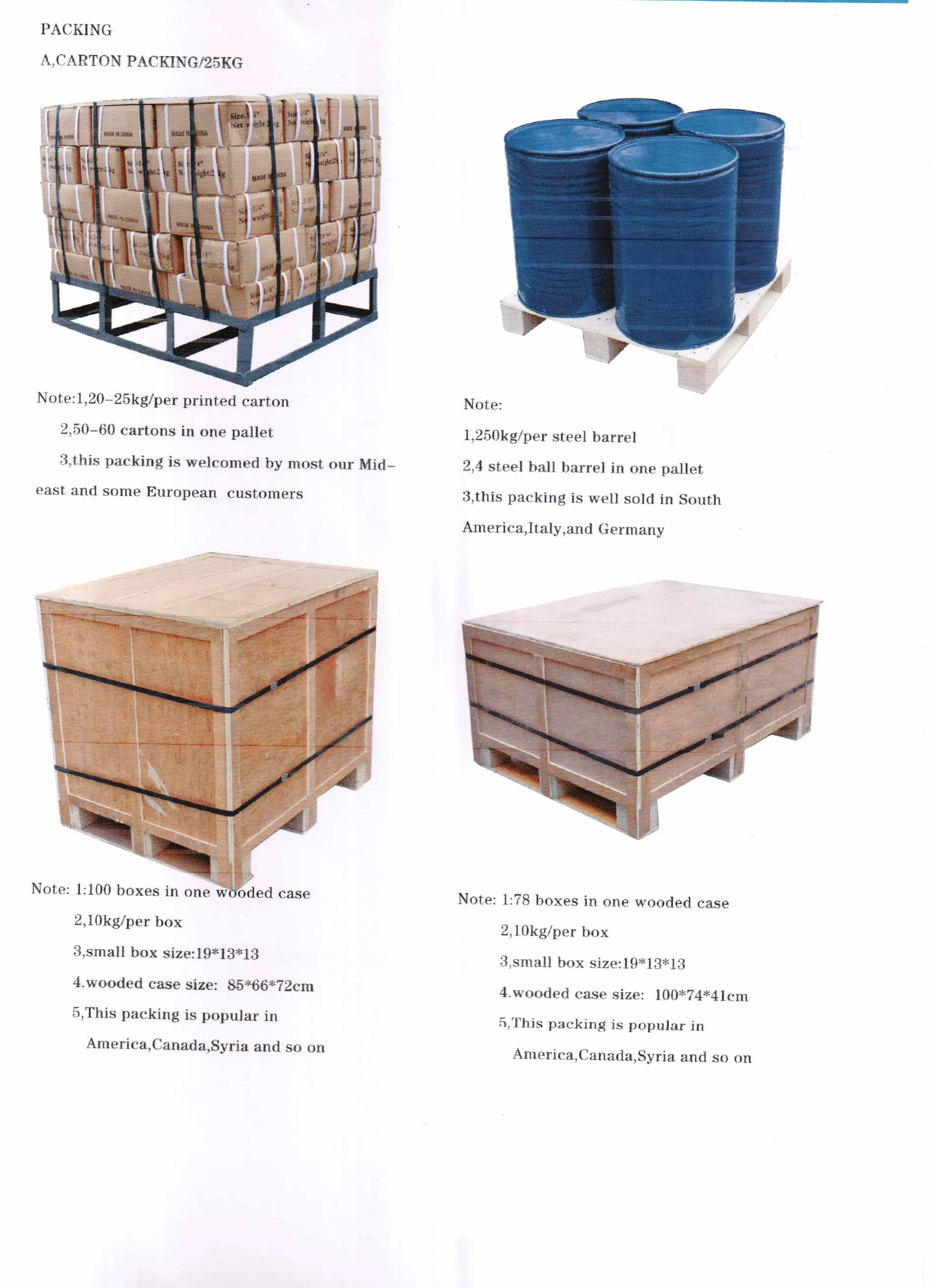 3.250KG per steel drum, 4 drums in one pallet with size 75cmx75cmx65cm