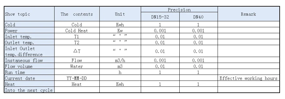 It can display various data required for the heat meter, and all the data are showed by English;