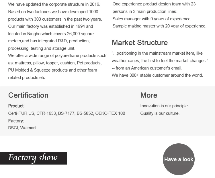 Certification | CertiPUR-US,Oeko-Tex 100 and so on | ||