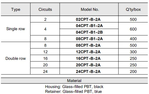 Current rating: 3 A AC, DC (0.3mm2, Single circuit)