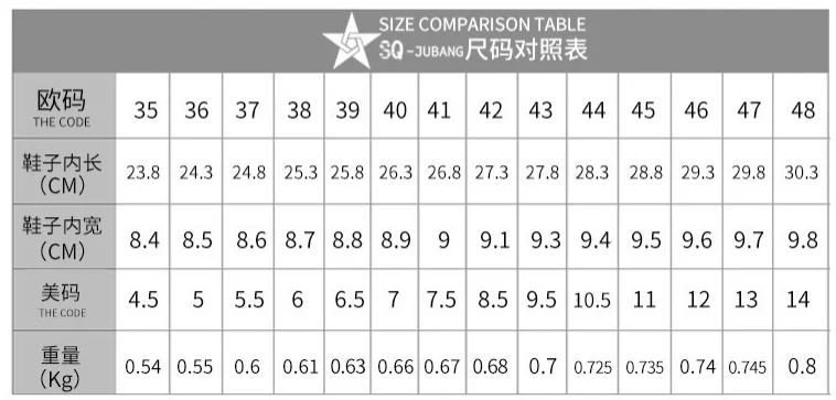 Shoe size | (Europe) 36-48 |