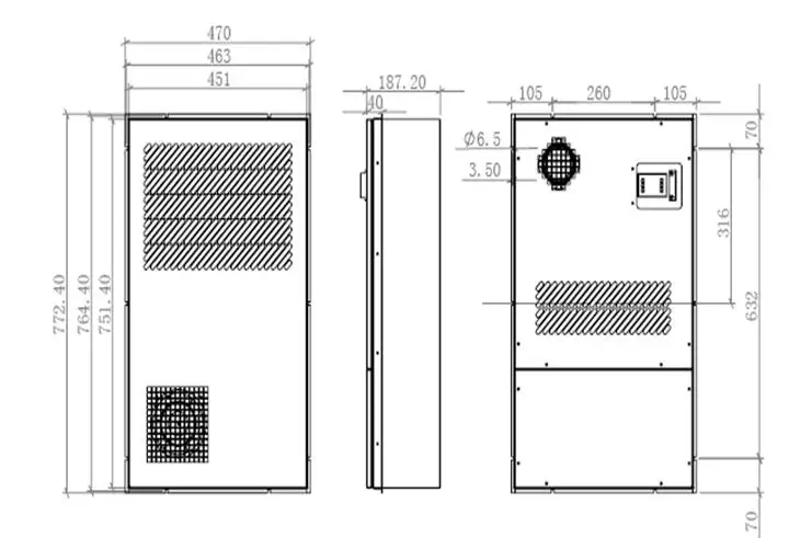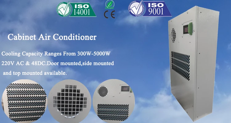 Cabinet air condition is actively cooling with compressor, and it will remove the heat inside the cabinet to outside. It also can keep the dust and heat outside the cabinet, avoiding problems from using fan. The inside cabinet can be maintained at an ideal temperature for electrical components which effectively guarantees the stability of the electronic equipment and improves the reliability of the whole system.