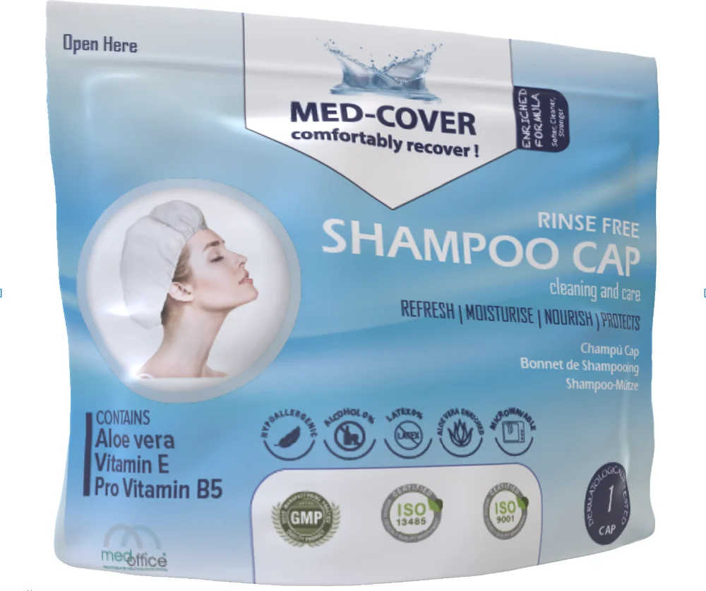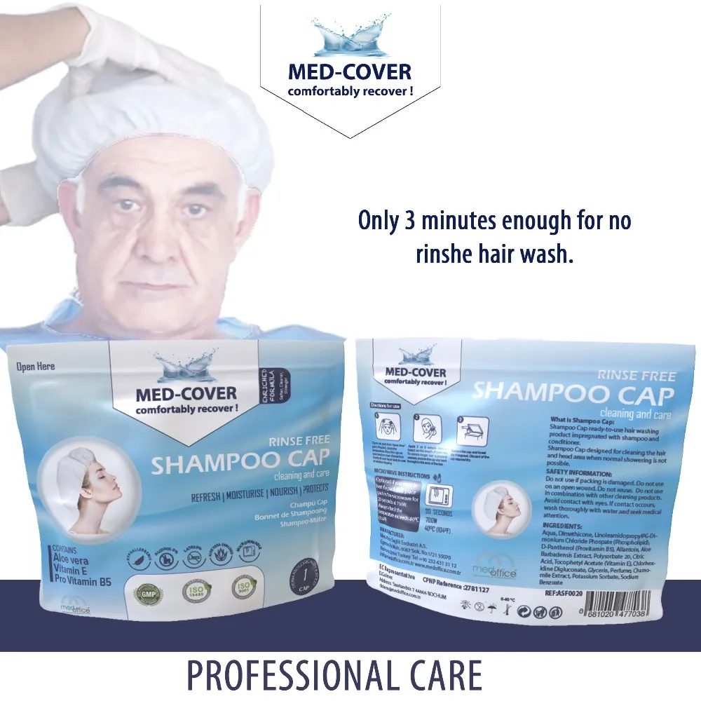 Shampoo Cap is a ready to use, no rinse product created for the cleanse and the condition of the hair area in a very easy way. It is a single use hygiene product. Alcohol and latex free helps to clean, condition and to remove odors from hair. Hair cleaning will be done in just 3 minutes without no mess!!