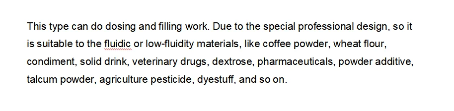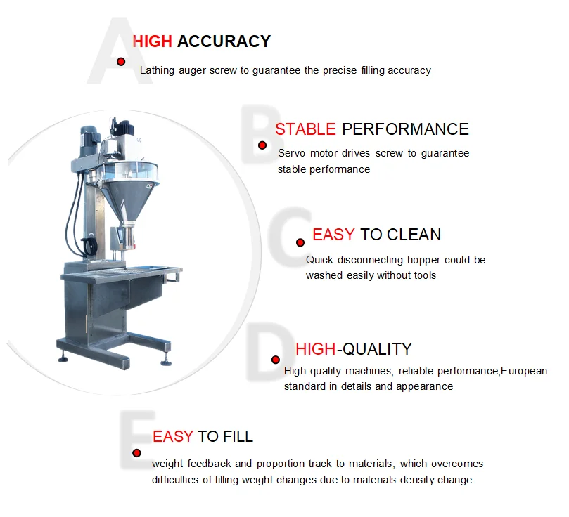 Packing Accuracy | ≤ 100g, ≤±2% | ≤ 100g, ≤±2%; 100 – 500g, ≤±1% | ≤ 100g, ≤±2%; 100 – 500g, ≤±1%; ≥500g,≤±0.5% | ≤ 100g, ≤±2%; 100 – 500g, ≤±1%; ≥500g,≤±0.5% | |||