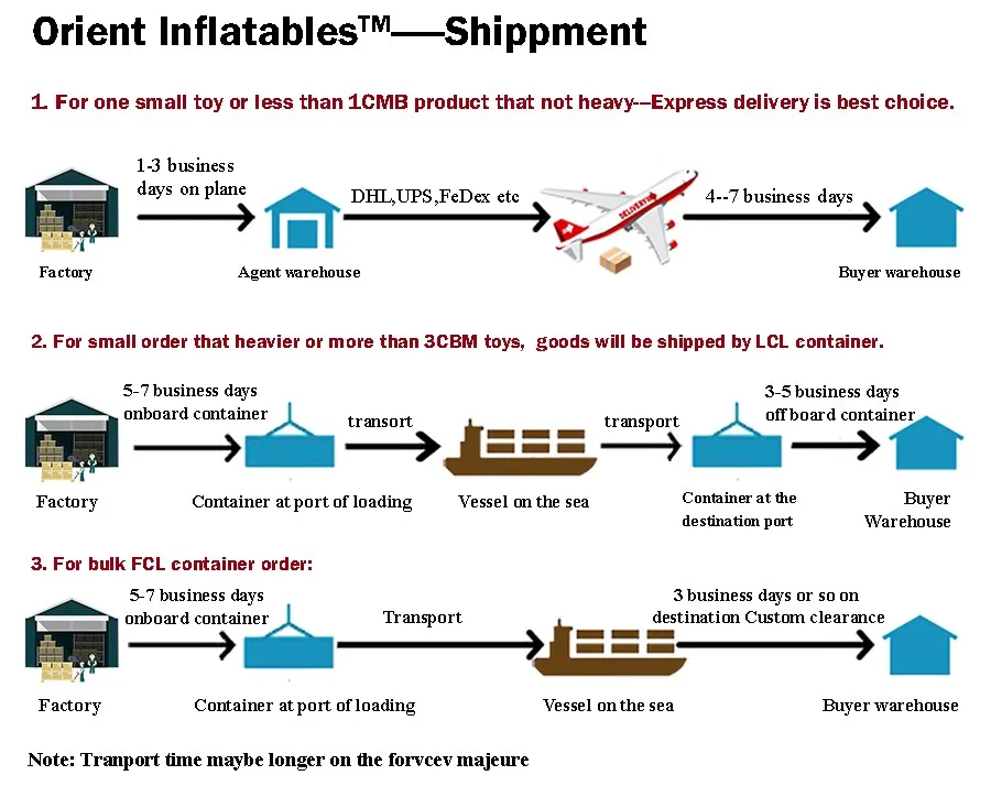 A: Generally speaking, one inflatable toy including one blower, one set repair kits, stakes, and ropes if under demand.
