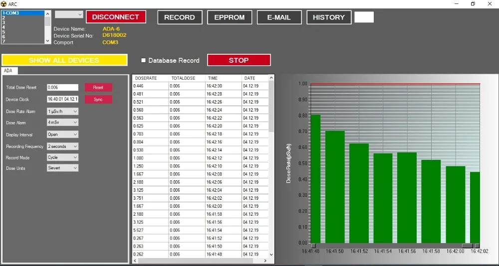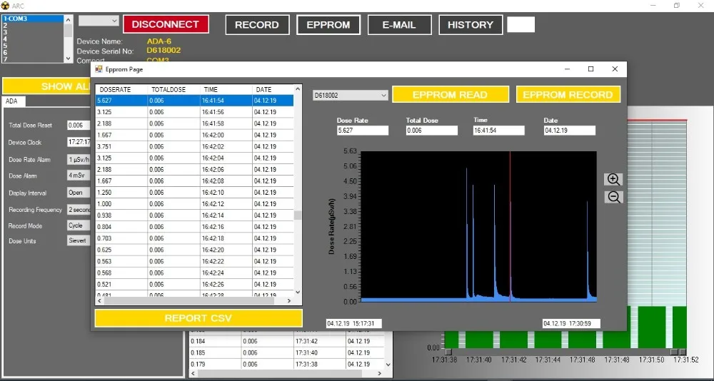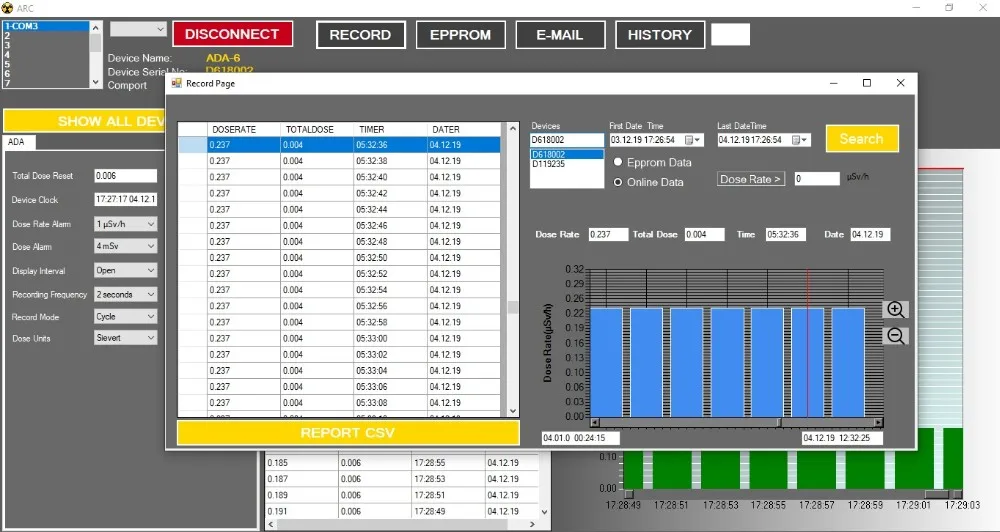 * 4096 Row Total Hp(10) Dose and Dose Rate Recording with Time and Date Data