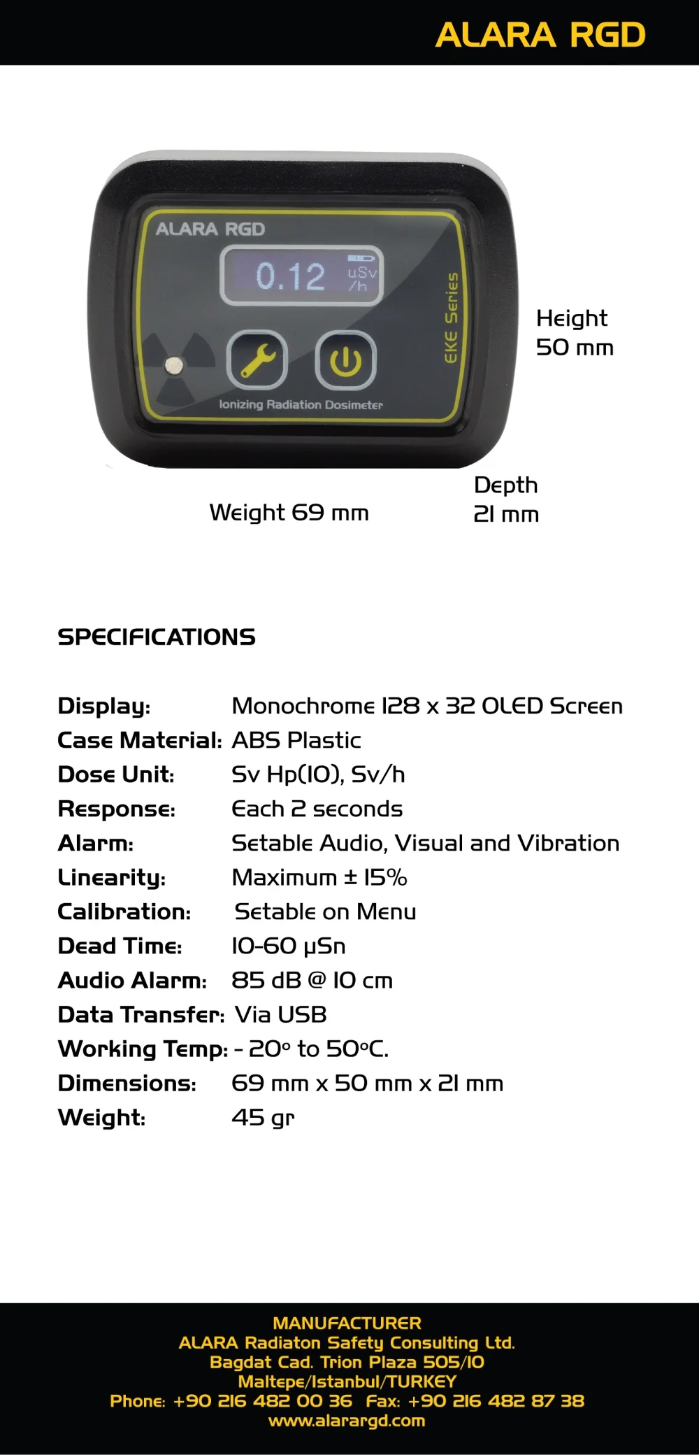 Eke Series Personal Electronic Dosimeters have been presented to the users with 2 different Geiger Muller (GM) tube options to determine the Hp (10) personal radiation dose and dose rate accurately and quickly.