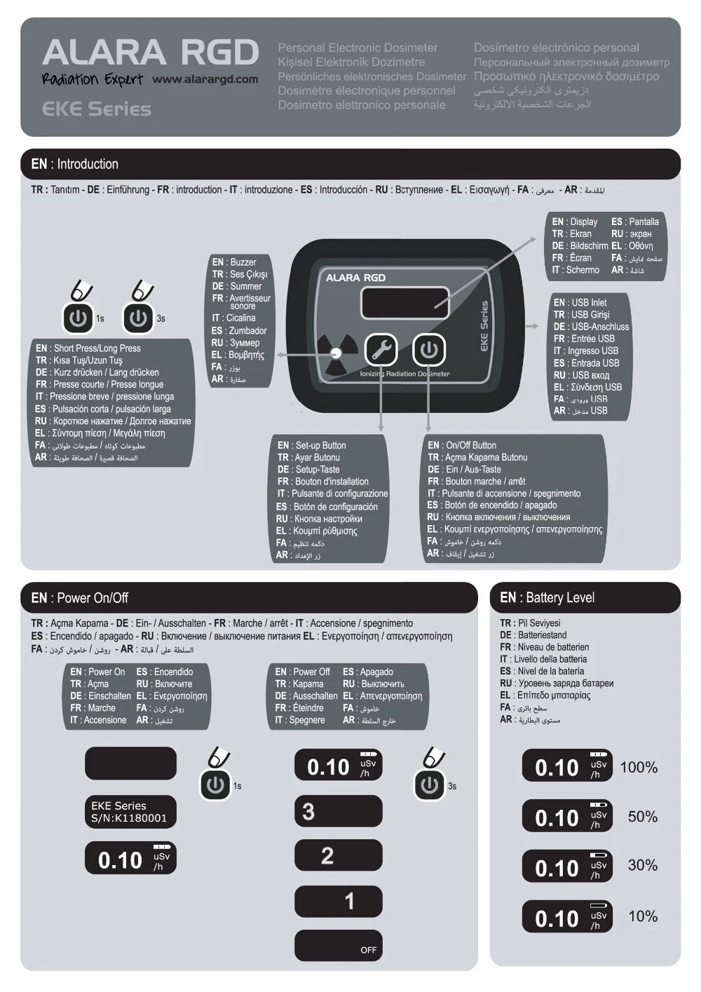 EKE Series, is a personal electronic dosimeter capable of monitoring real dose Hp (10) personal dose and dose rate with 2 different Geiger Müller tube options.