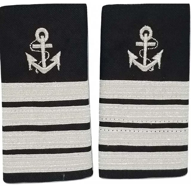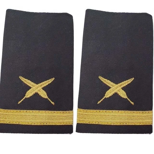 Merchant Marine Stewards Department and restaurant support staff uniform shoulder boards and epaulets feature a crescent moon symbol with one to four gold or silver bars on black 60/40 cloth material. Sold as a set of two for both shoulders.