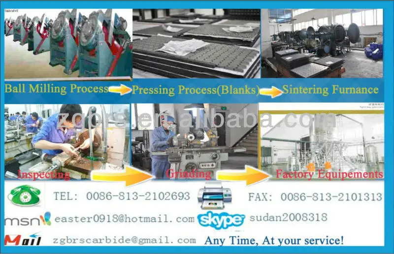 Our factory is located in Zigong National Hi-tech Industrial Development Zone, equipt with high tech equipments such as sinter-HIP furnace, has 13 years history in manufacture and exporting tungsten carbide products.