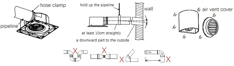 You can have 1 fan + 1 pipeline + 1 vent cover be connected for a single room's air extraction. Or, have several fans + several pipelines coming from different rooms be jointed together to share 1 vent cover (air-outlet). The application is just flexible!