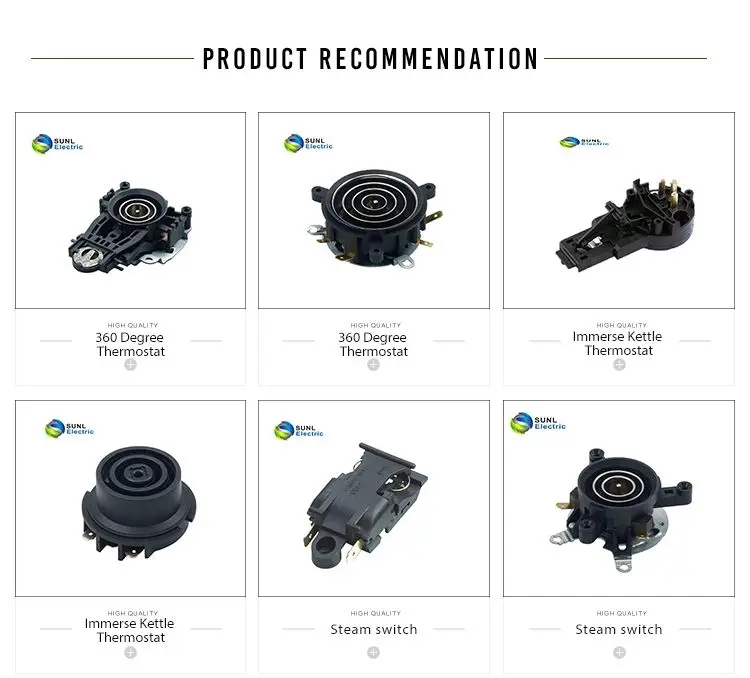 360º incorporate temperature control KSD-368-5C and KSD185-5IC01 series. Incorporate temperature control includes two parts of the control, connector. 360 degree cordless connection. The controller have automatic cut-off, safe for children and elder, waterproof, working steady, not weave when empty. Bimetal inside or flexibility mechanism is not influenced by setup and using below the heating element. When water boiled and dry boil automatic switch off. manually rest more safety.