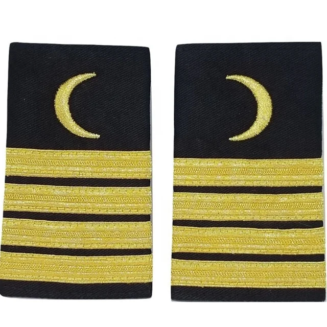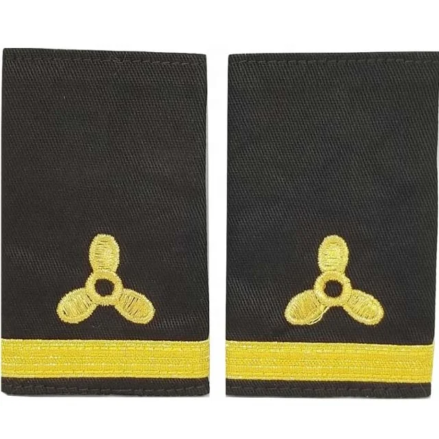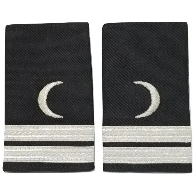 Merchant Marine Stewards Department and restaurant support staff uniform shoulder boards and epaulets feature a crescent moon symbol with one to four gold or silver bars on black 60/40 cloth material. Sold as a set of two for both shoulders.