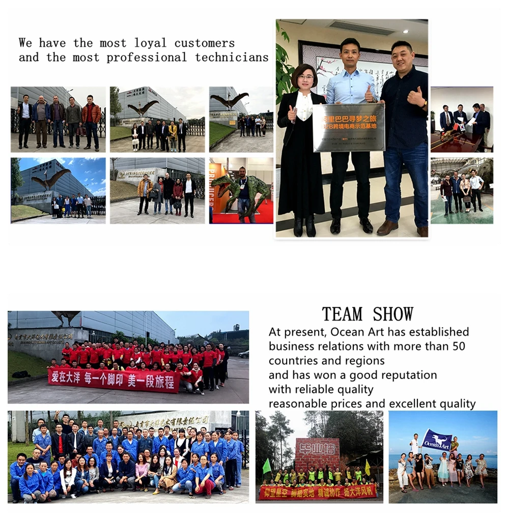 Application | Real estate opening ceremony Outdoor/Indoor amusement park The Jurassic dinosaur theme playground Carnival/Business activities Restaurant/shopping mall Educational playground Road beautification Dinosaur museum Zoo Exhibition TV program City plaza Etc. |