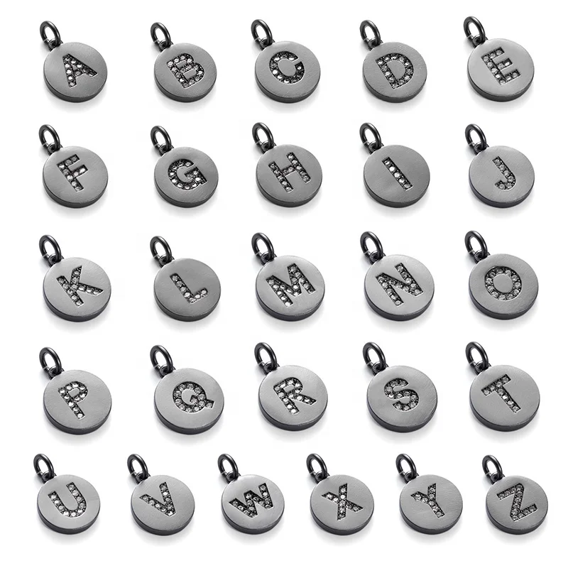 Product name | Platinum Filled Brass Coin CZ Pave Letter Pendant, Matte Surface, 10 Pieces Per Bag | ||||||||||||