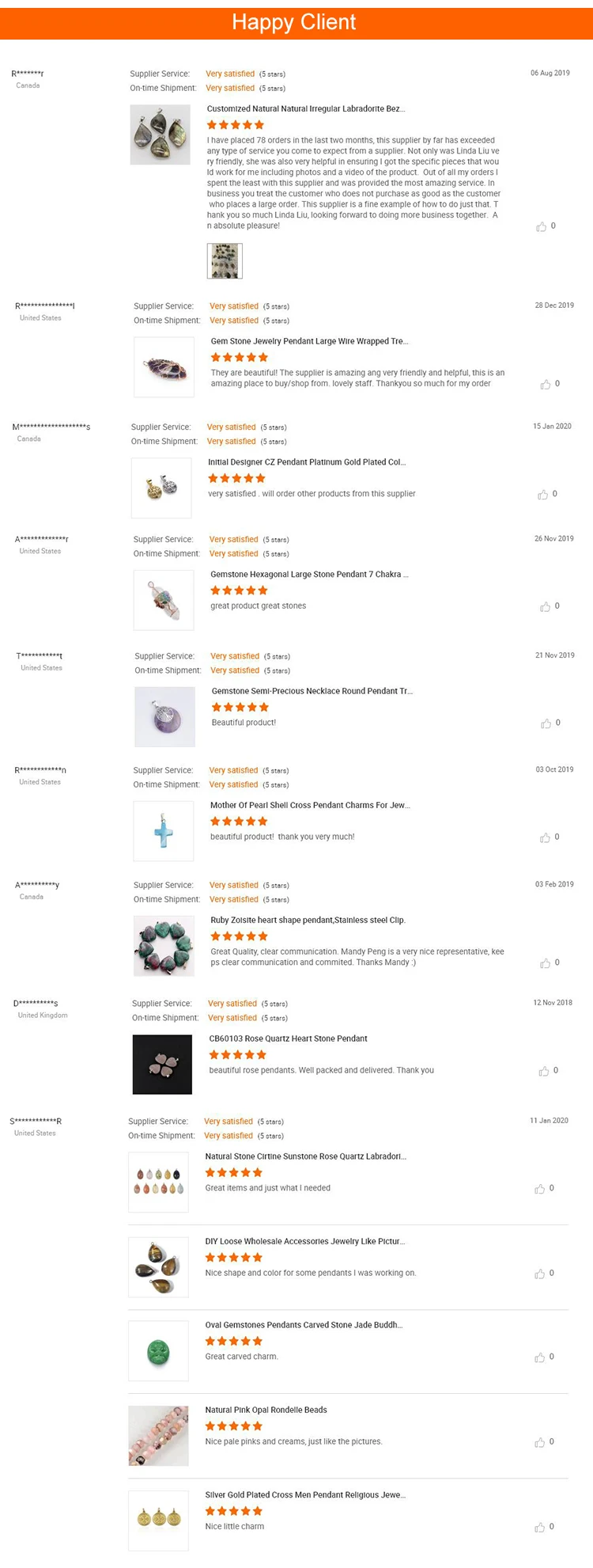 Delivery time | within 3 days for stocks, 2-3 weeks for customization | ||||||||||||