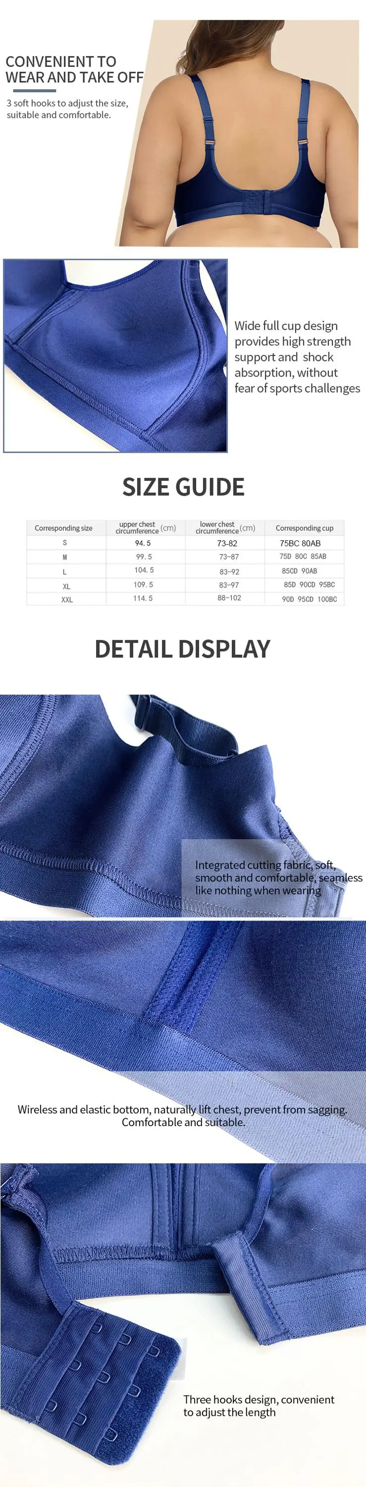 Size | S(75B 75C 80A 80B) M(75D 80C 85A 85B) L(85C 85D 90A 90B) XL(85D 90C 90D 95B 95C) XXL(90D 95C 95D 100B 100C) |