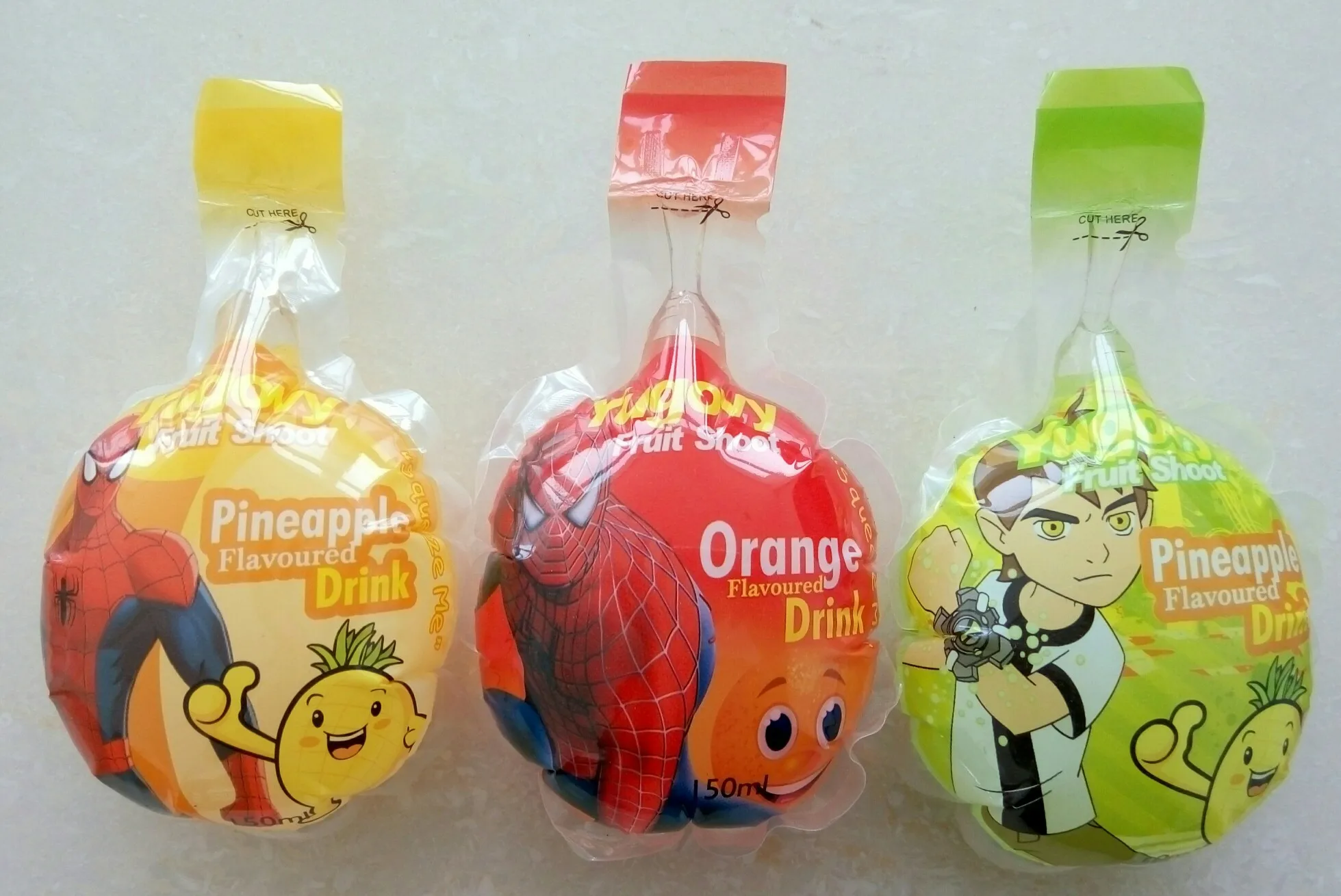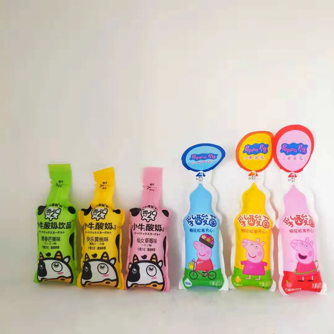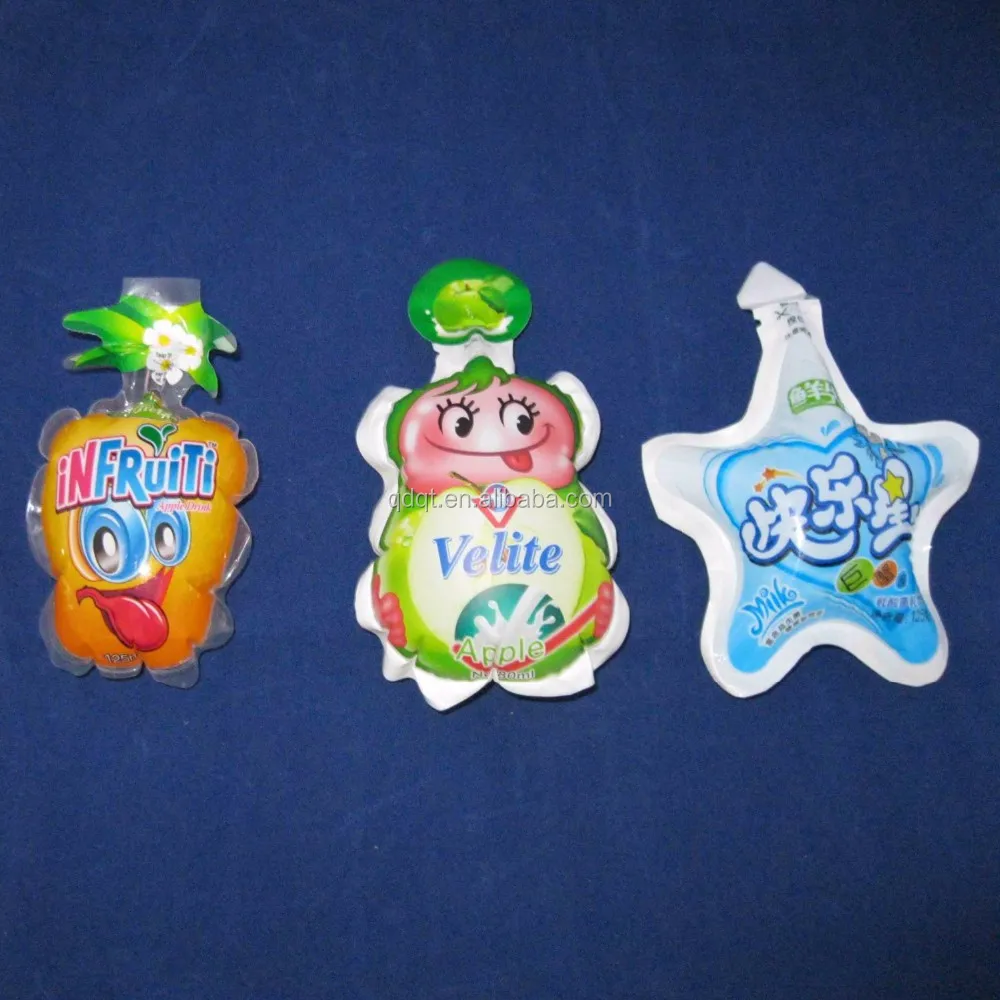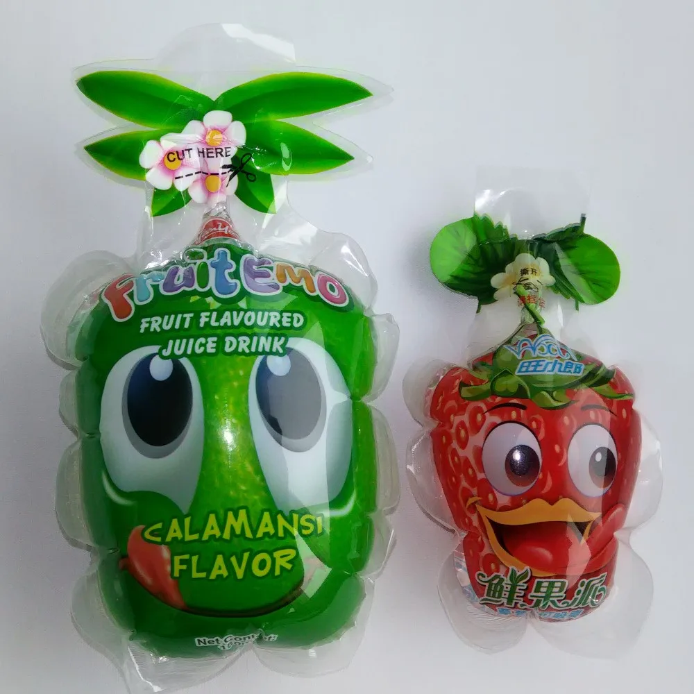 The water can be packaged in the plastic packet for kids.Kids love the yummy flavour and the virous shape bag,especially filled up with a ballooned body.The kids like pinching it by his fingers. We have different shapes,like fruit shape and animal shape which children love the vivid pattern very much.