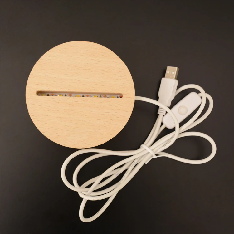 Wholesale Price Button Switch 3d ABS Wood like Night Light Round Wood LED Lamp Base for Acrylic