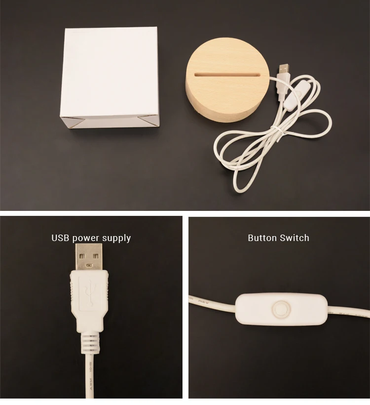 Including wooden light base with USB cable and small white box