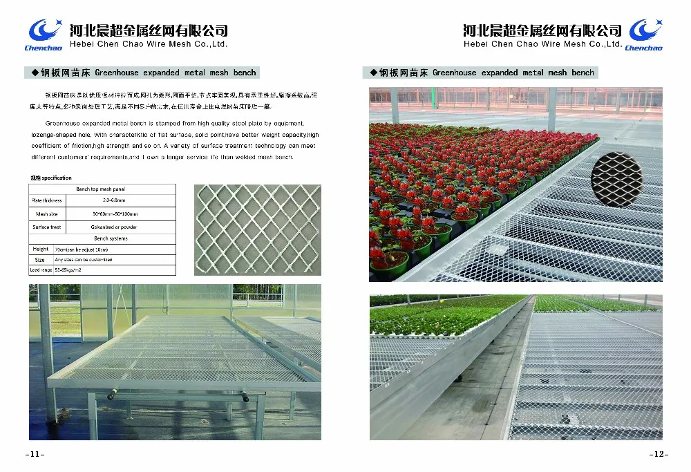 Established in 2007, Hebei Chenchao Wire Mesh Co.,Ltd is a manufacturer which specialized in research, development and production of greenhouse rolling bench, multi-layers bench systems, expended metal bench, hydroponics ebb and flow table system.