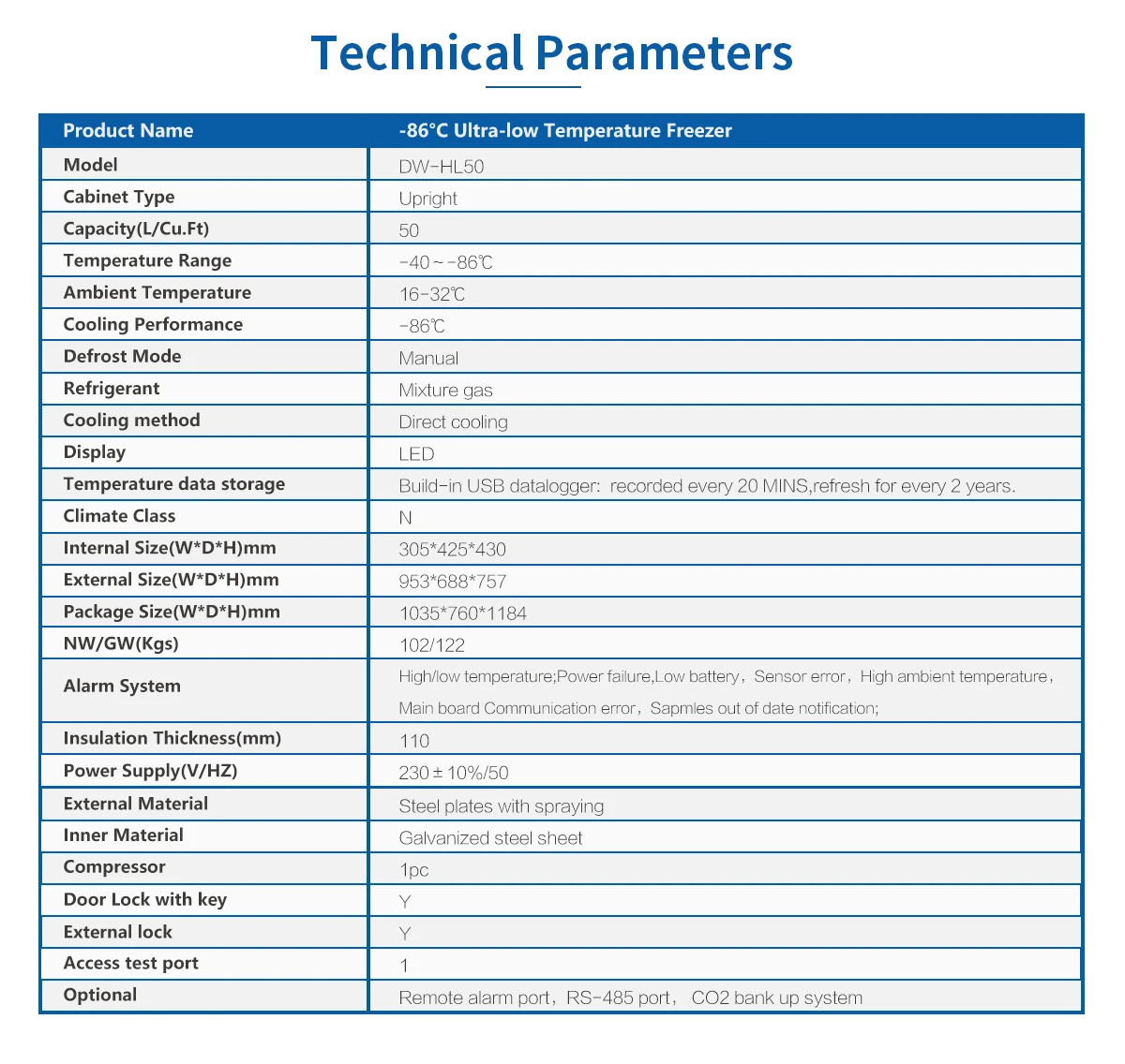 Meling -40C ~ -86C Laboratory Ultra Low Temperature Freezer DW-HL50
