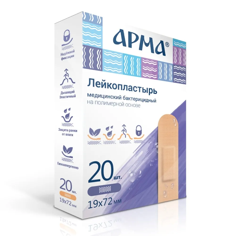 Medical band aid by Russian manufacturer in box packaging
