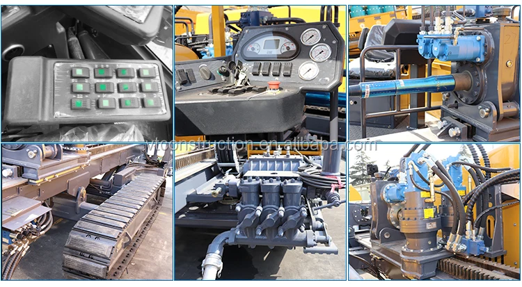 HDD machineis hydraulic integrated underground pipe laying machine.The hydraulic parts (including pump, pressure valves, tubing, quick joint) are imported or from joint venture. The diesel engine is from domestic high-quality brand-name products, both powerful and reliable in performance.Strong rubber track walking system,can move quickly. The power head with double motor drive, high speed, large torque. Double gripper, can load and unload quickly. It is suitable for long distance, large diameter pipeline laying project.