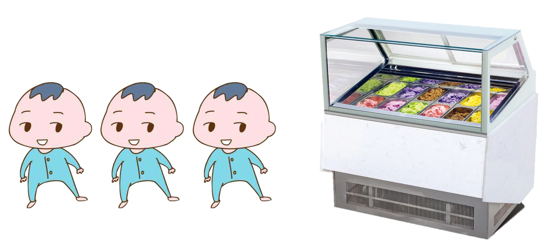 Oblique right angle ice cream cabinet inside design, so that all the children can see the delicious ice cream.