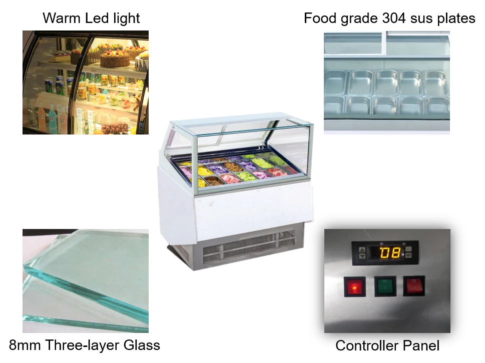 Compressor ● Embraco and Danfoss brand(Optional) ● Powerful, smooth and energy saving Glass ● Whole deeply tempered glass of 8mm ● Stable, heating insulating Panel ● Whole food grade 304 stainless steel ● Safe and health Warm Led light ● Make the food look like more attractive and delicious Automatic control system ● Higher precision of the temperature control